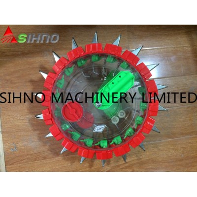 Characters:1According to the needs of farmers, our factory has developed hands push wheeled corn planter after years of experience. 2 This planter has become a successful product after two years' practice.3 It is prolonged and durable. Sowing accurately4 Sowing unanimously and buds come out unanimously5 The efficiency is two times higher than portable planter6 Nicer shape and more durable7 This product is a qualified one after verified by State Bureau of Technical It can plant corn, peanut,soybean, pea nut, mung bean,walnut,sorghum,grain.Planting distance adjustment method:1.Find the starting point,starting point screw,the original size blocks and nozzle to draw.