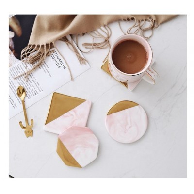 Guangdong Creative pink gold marbled ceramic coaster gold-plated coaster insulation coaster