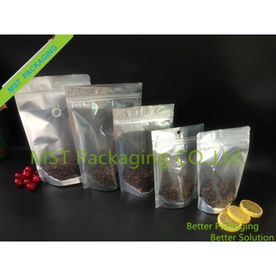 One side is paper material and the opposite is clear plastic material which makes the bags look much more different and outstanding on the shelf. It's a new packaging idea and good to show nuts, tea, candy and etc.